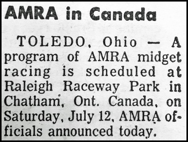 AMRA in Canada Article. Courtesy of Thomas Schmeh-Speedsport News 1975-The Ridge Raceway