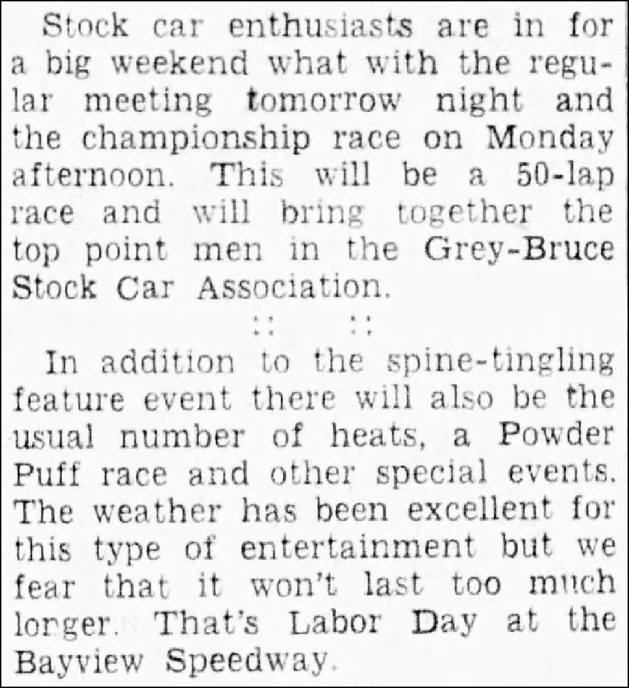 Courtesy of The Owen Sound Sun Times, September 4, 1953