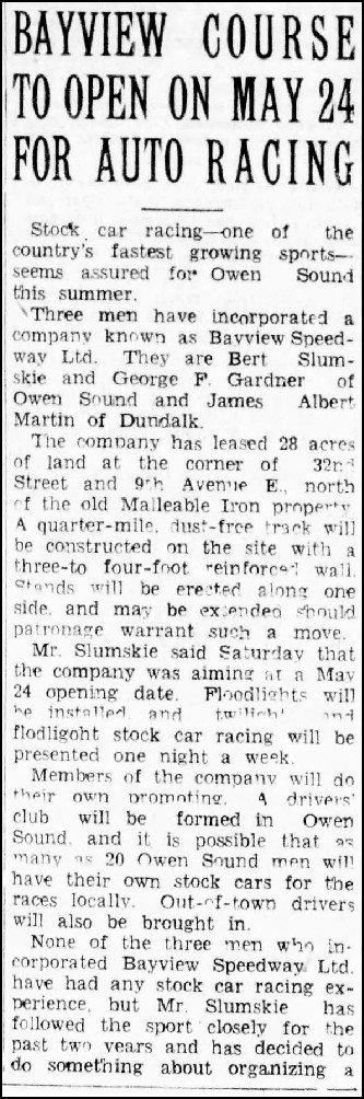 Courtesy of The Owen Sound Sun Times, May 8, 1952