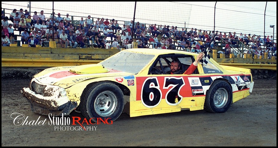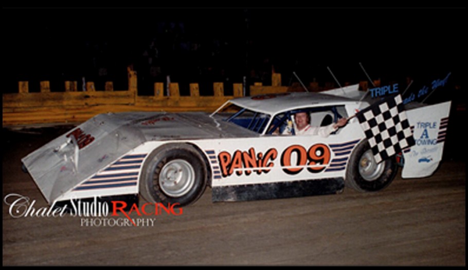South Buxton Raceway Late Models Ron Atkinson #67 takes the win at South Buxton Raceway back in 1987. Courtesy of Alan Arseneault. Don Hendricks #09 with another victory in the PANIC #09 at South Buxton Raceway in 1984. Photo by Alan Arseneault