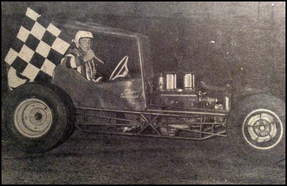 Norm Mackereth takes the Checkers in the Hagen-Howard Supermodified. Courtesy of Ken MacIsaac