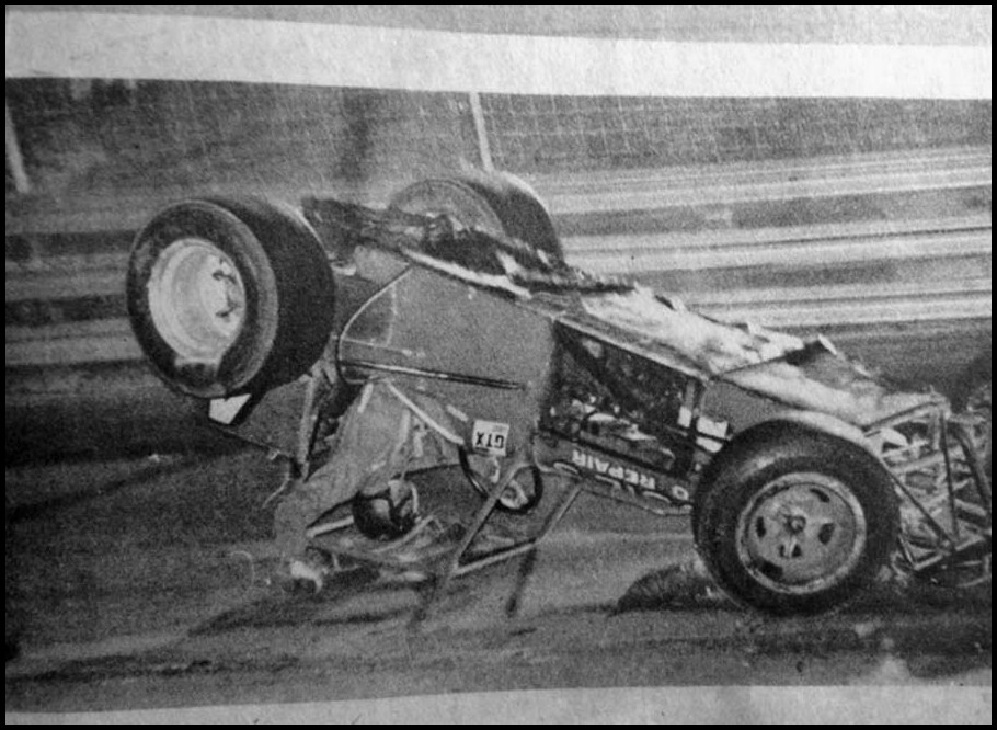 Bill Daniels was one lucky man after his Supermodified did a series of flips at Delaware Speedway back in 1970. Courtesy of Bill Daniels