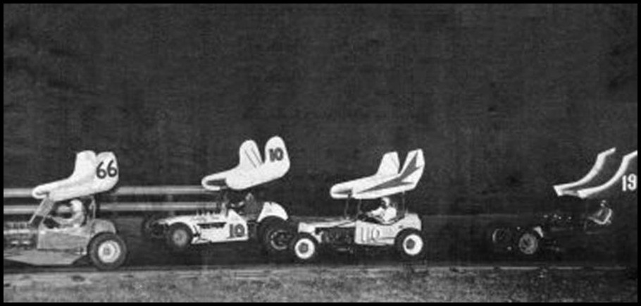 Don Fleming #66, Harvey Lennox #10, Jack Greedy #110, and Gary Witter #19 at Delaware Speedway. Courtesy of Bruce Jones