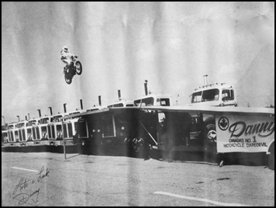 Cayuga Speedway Stunts Danny Ford Jumps Slack Transport Trucks at Cayuga Speedway. Courtesy of Willie Haroldson